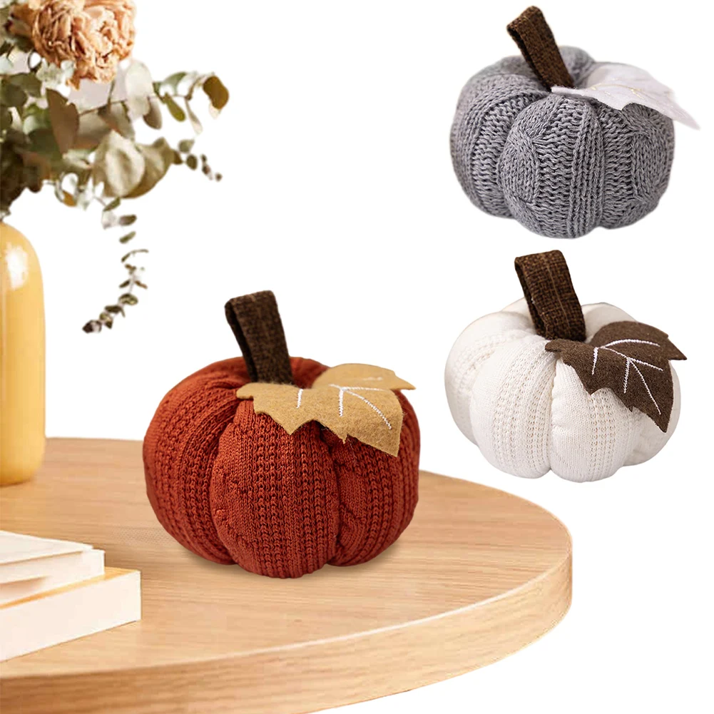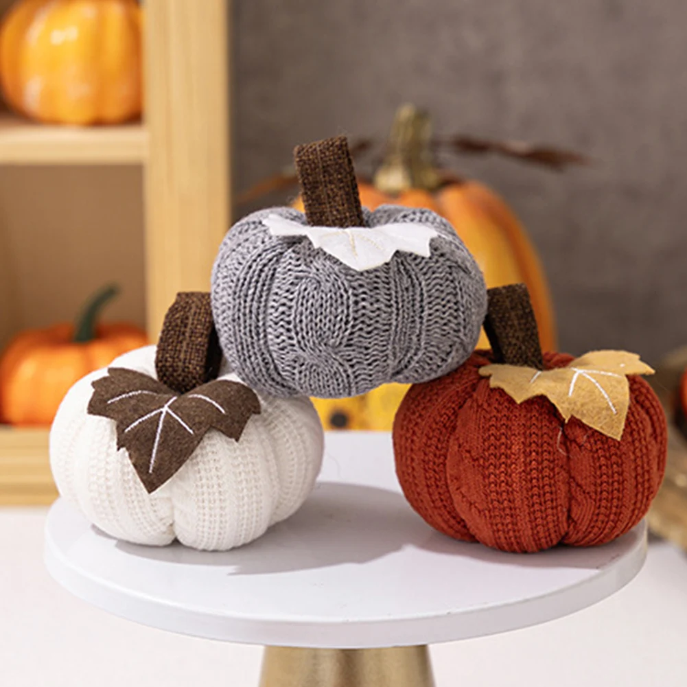 1-10Pcs Autumn New Knit Mini Pumpkin with Maple Leaf Decoration Halloween Thanksgiving Day Kitchen Centerpiece Ornament Gifts