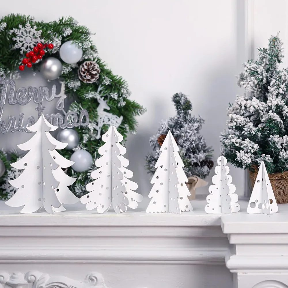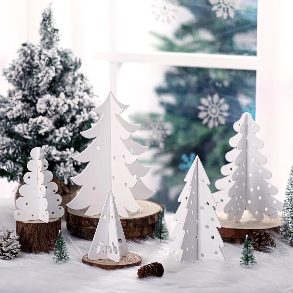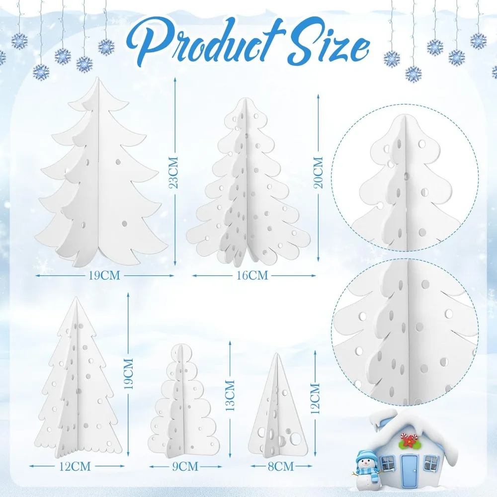10 Pcs/ 5 Set Wooden Christmas Tree Table Decorations 3D White Tree Tabletop Signs for Christmas Centerpieces Winter Wonderland