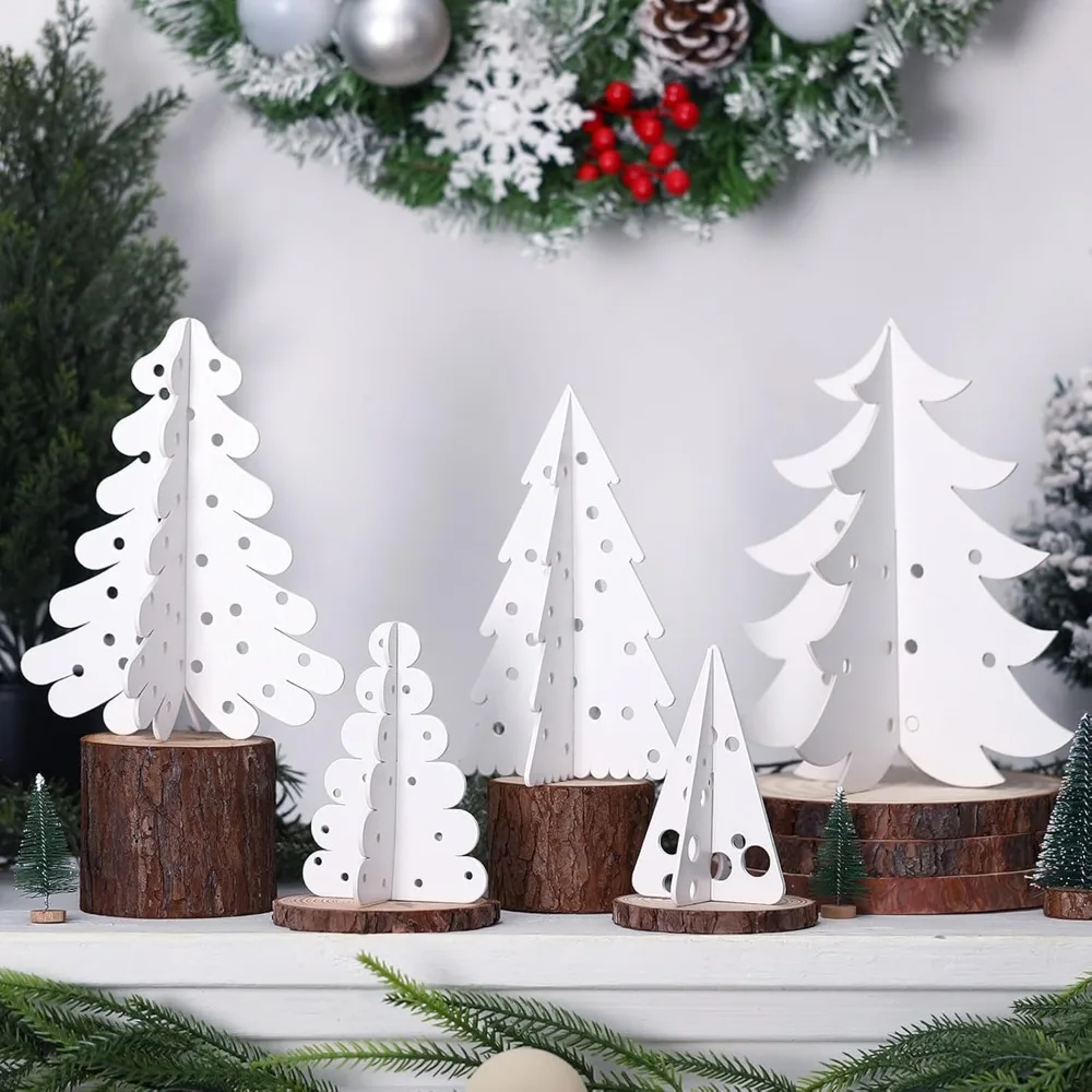 Wooden Christmas Tree Table Decor: you will receive 10 pieces of wooden christmas trees in 5 different sizes, which can be easily combined into 5 sets of exquisite 3D white christmas trees, which can be applied as xmas party decorations, tabletop signs and centerpieces, winter wonderland decorations, adding to the christmas atmosphere