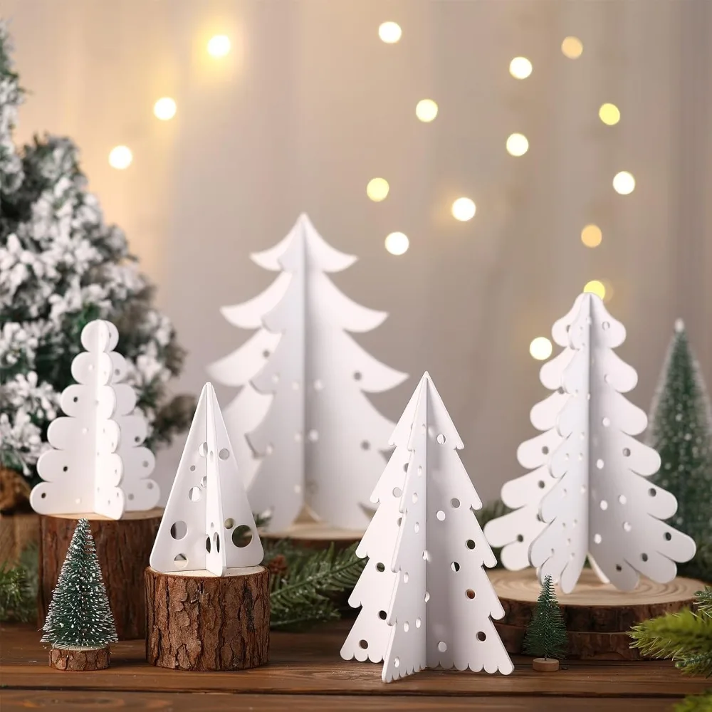 Full of Festive Spirit: the white wooden Christmas trees are visually appealing, featuring Christmas tree shape, 3D design, hollow formation, adding elegance and festive charm to your holiday, DIY friendly, can be painted or decorated with other ornaments