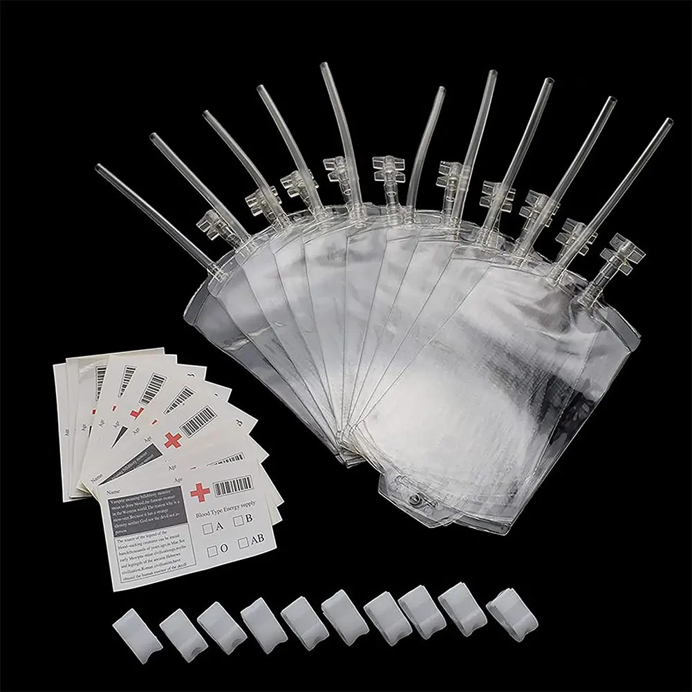 5. Package Includes: This party drink container juice pouch prop package includes 10pcs of 350ml dual-tube beverage bags, designed as energy packs resembling blood bags, making them a universal choice for Halloween parties and events inspired by vampire diaries.