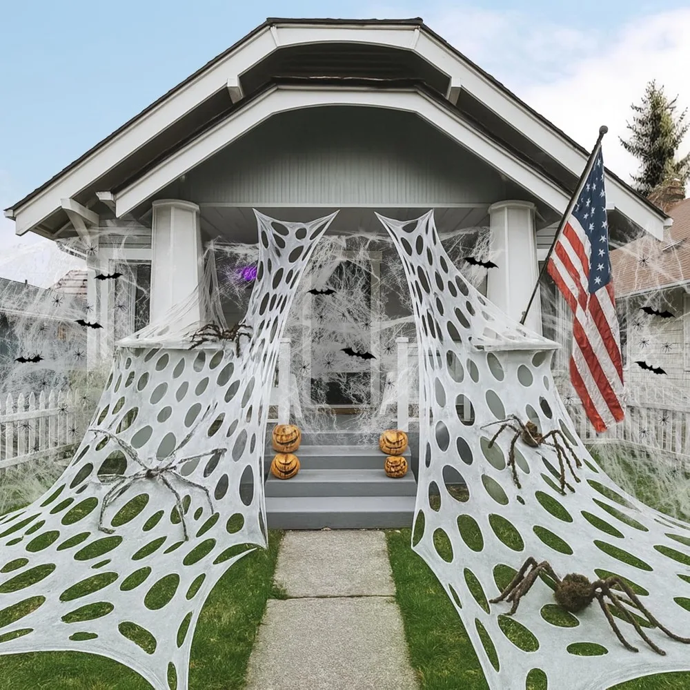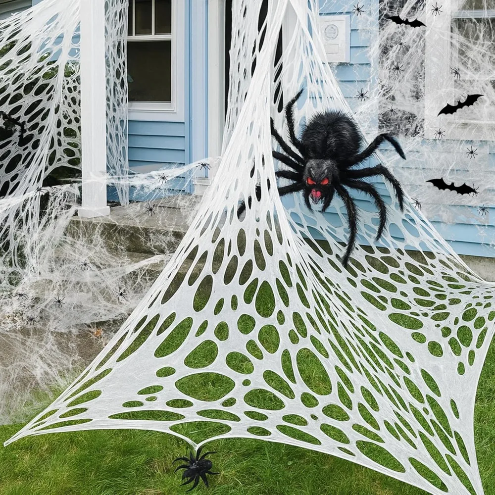 Giant Size: This halloween decorations outdoor spider webs measures about 472 x 39 inch and covers an area of 1360 square feet, the giant size meets your needs for both indoor and outdoor Halloween decorations.