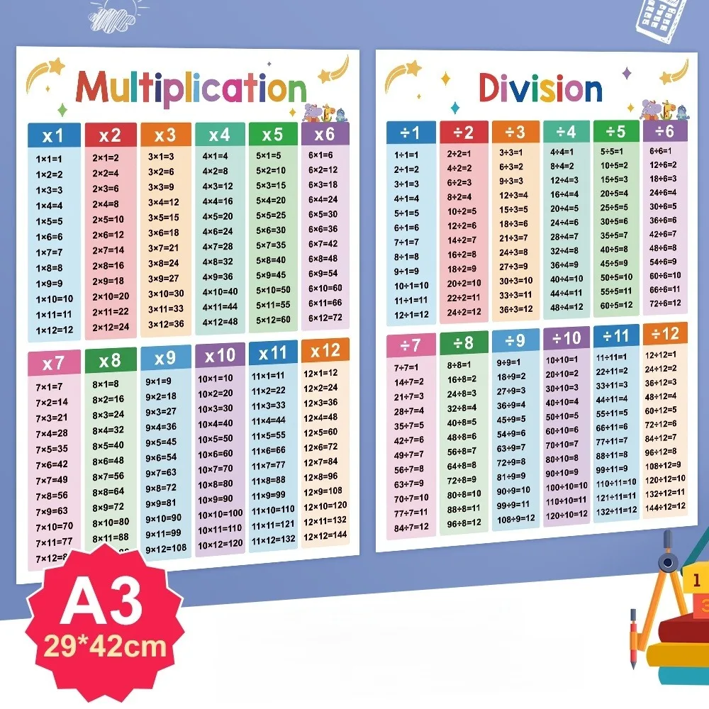 2 Educational Math Posters – Division & Multiplication Times Table Classroom Decorations for TeachersAvailability: 10000 in stock