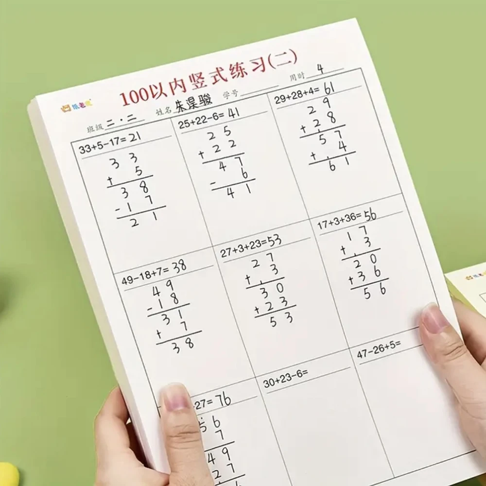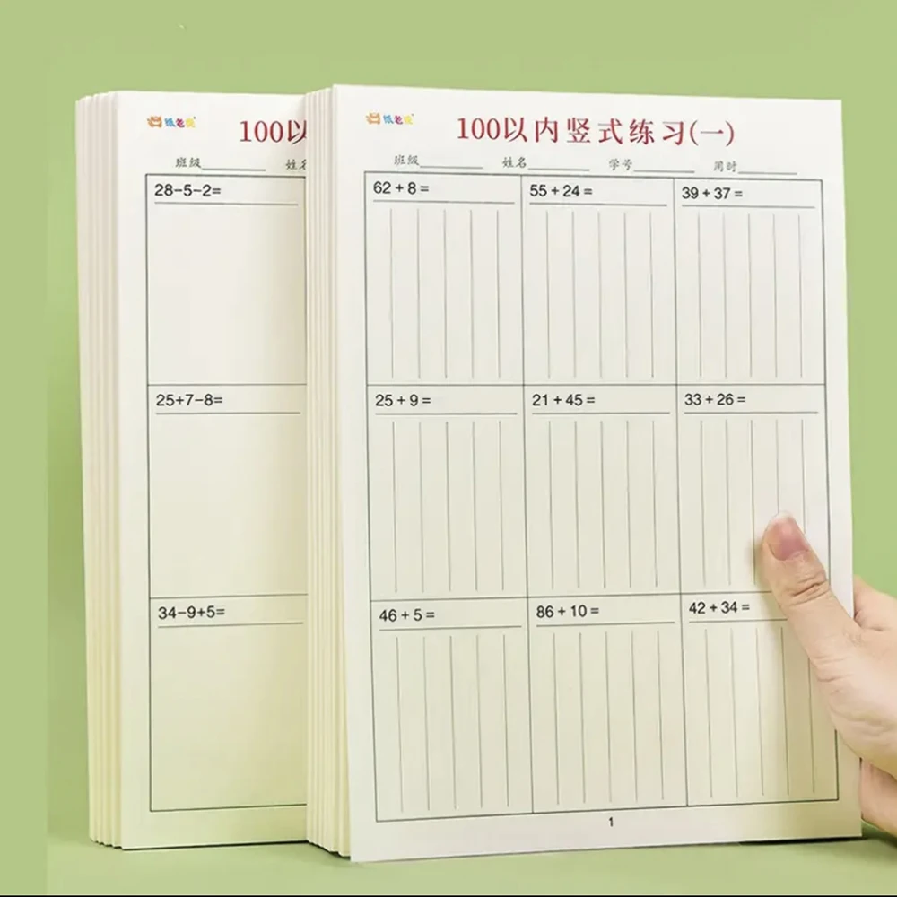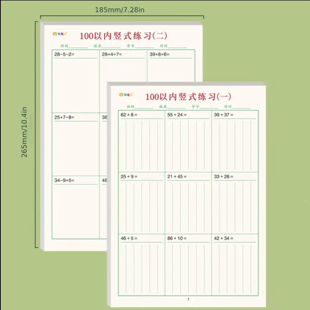2 Pcs Vertical Math Operations Practice Book 1-100 – Addition, Subtraction, Multiplication & Division Tables in Standard Format