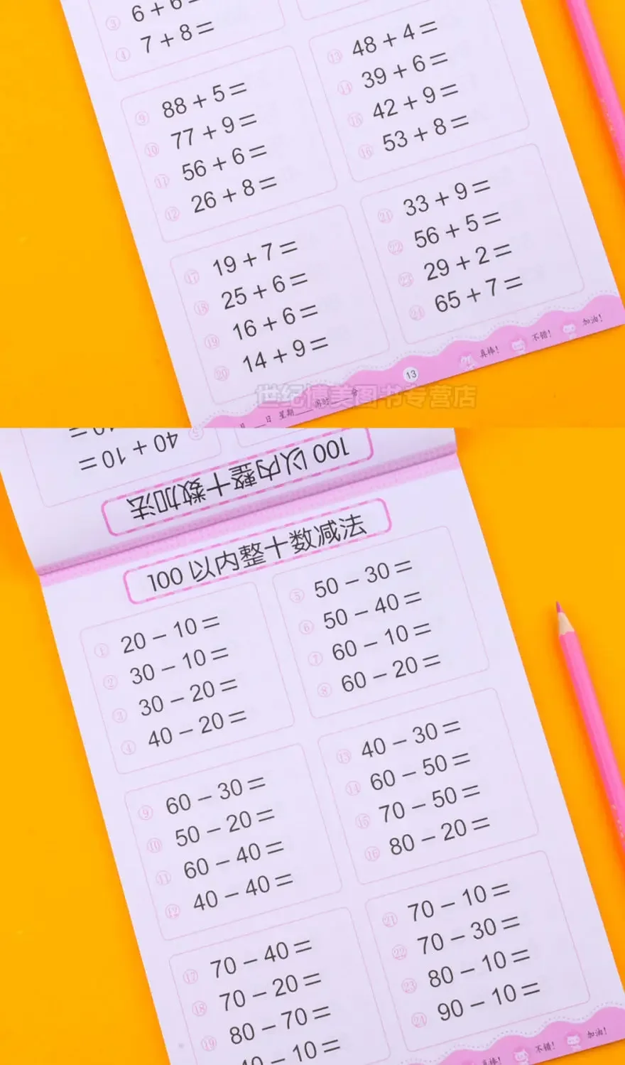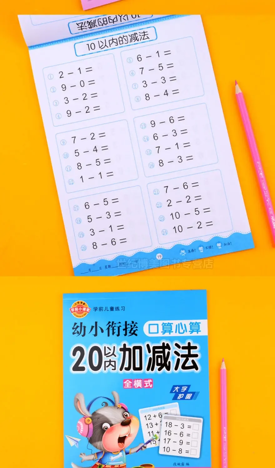 64 Pages / Book of Children’s Addition and Subtraction Learning Math Students Handwriting Preschool Mathematics Exercise Books
