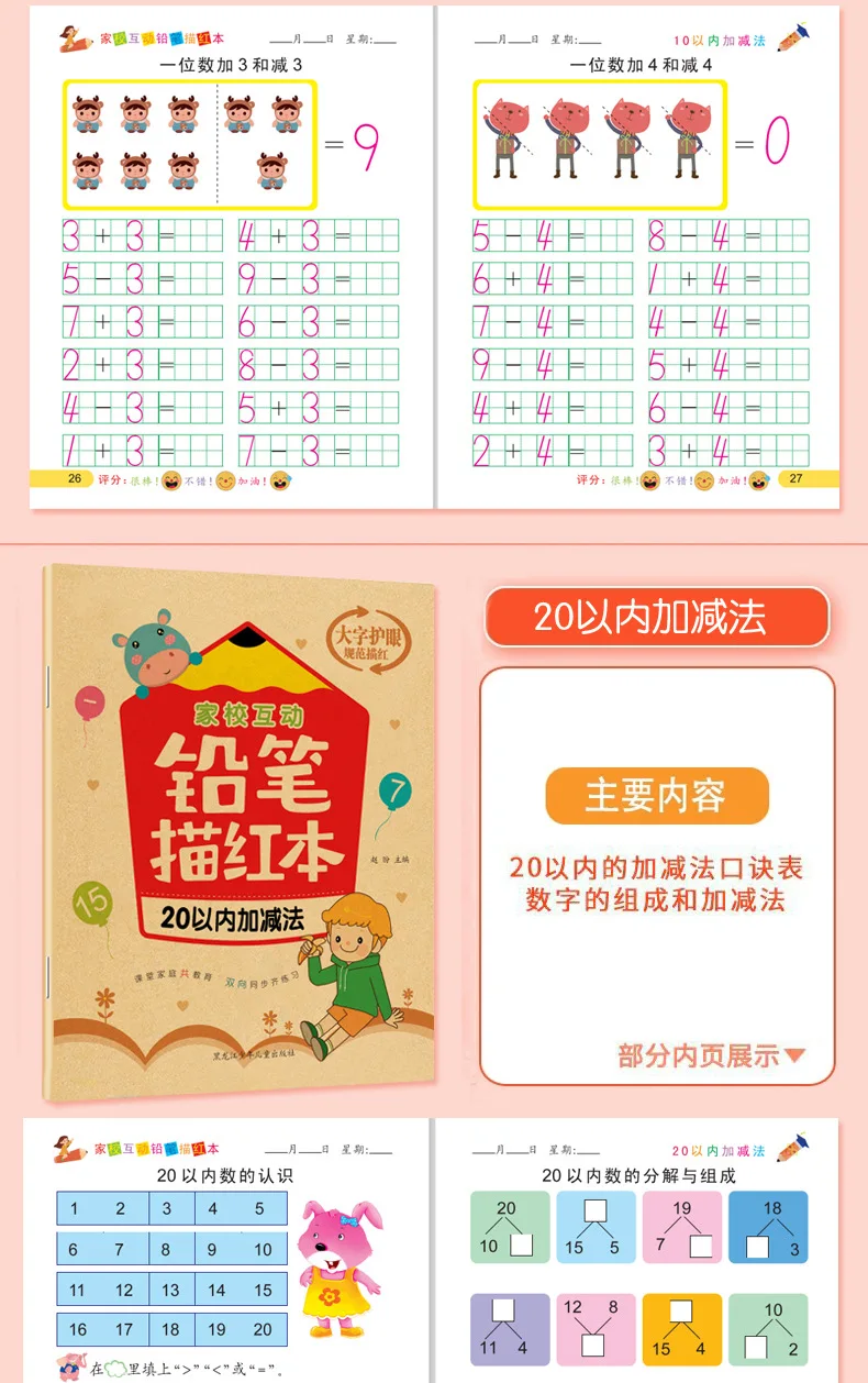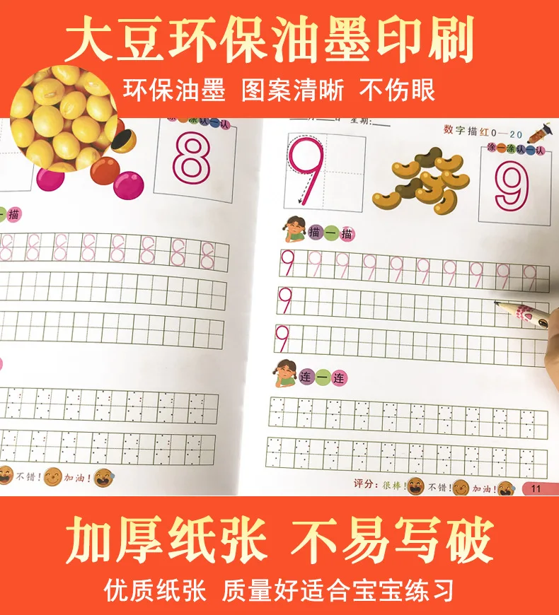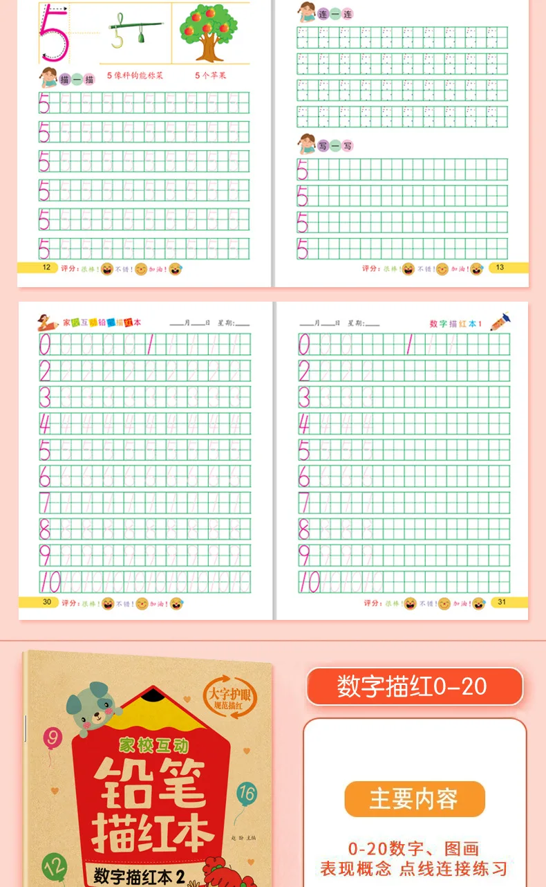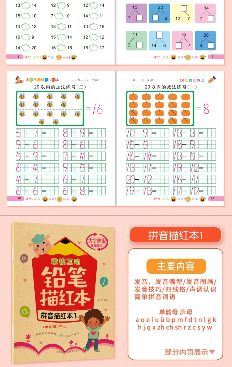 Alphabet Math Numbers Calligraphy Practice Book 32 Pages Writing Learning for Kids Children’s Kindergarten Exercises Workbook