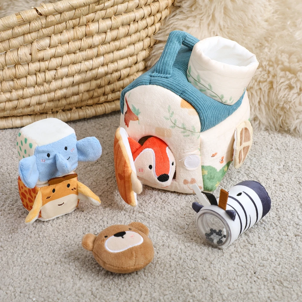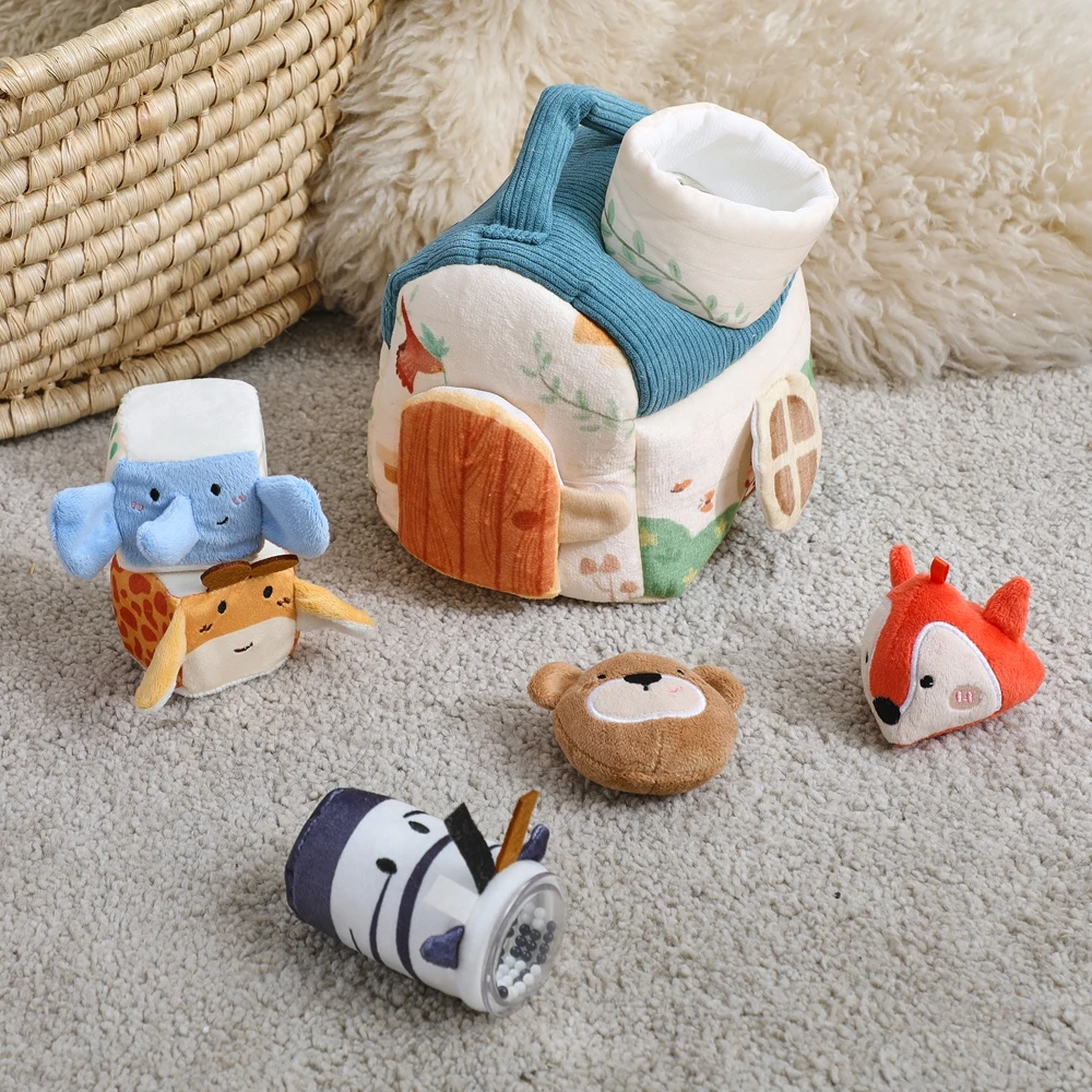 Baby Montessori Toys Cartoon Animal Cotton Magic Box Finger Movement Game Sensory Cognitive Toys With Sound And Mirror Functions