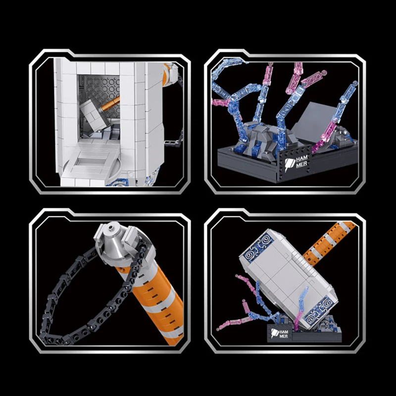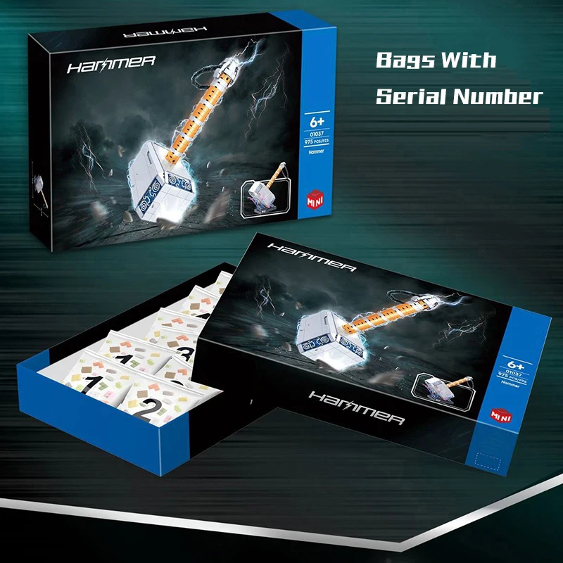975PCS Creative Super Hero Thor Battle Hammer Building Blocks MOC Assemble Bricks Set Toys Birthday Gift For Children Kids