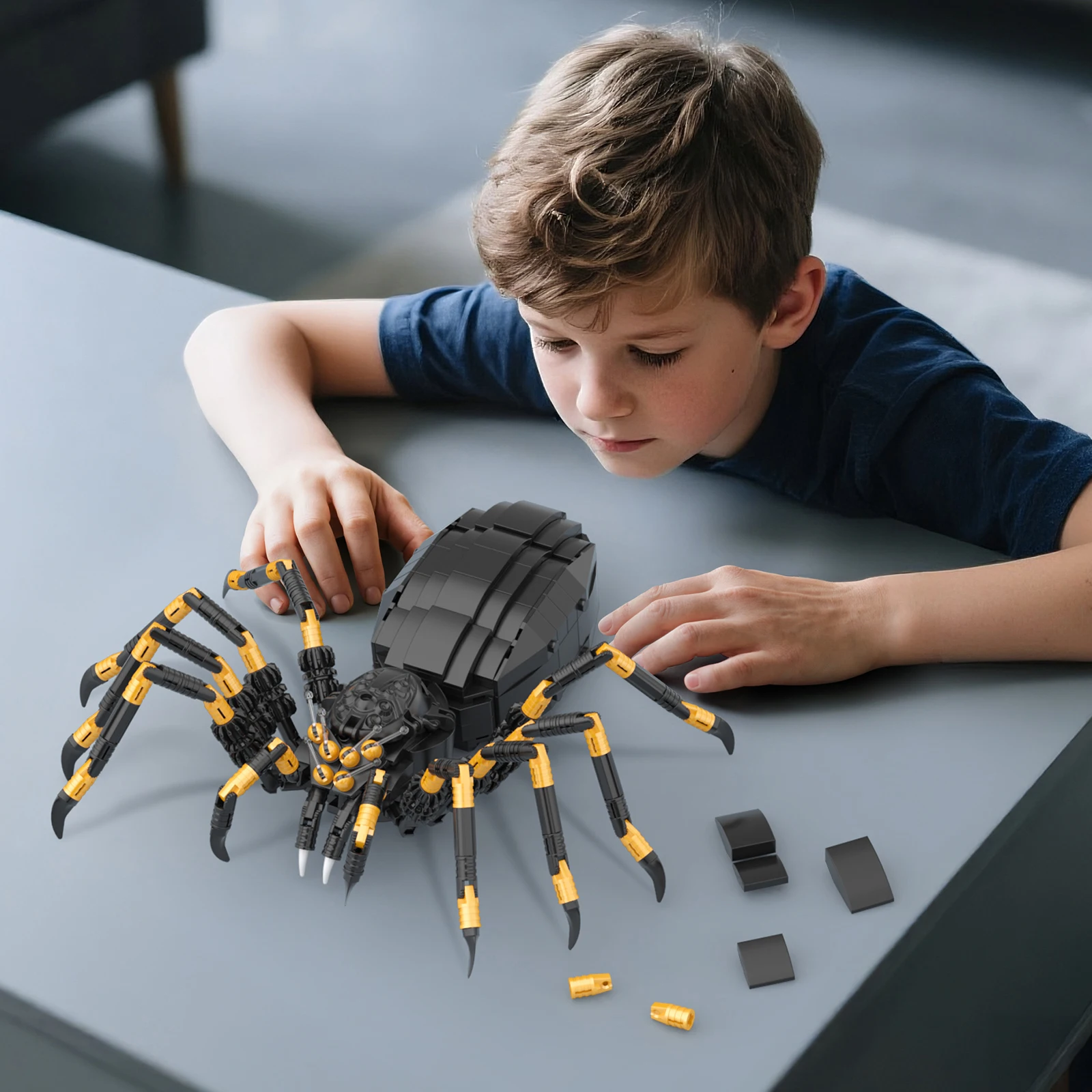 Creative Wild Animals Spider Building Blocks Set Micro Blocks Assembly Black Spider Model Kit Horror Halloween Toys For Kids