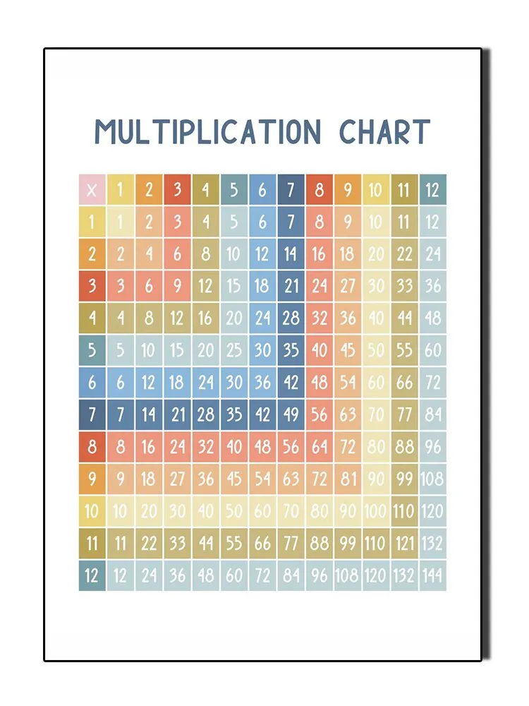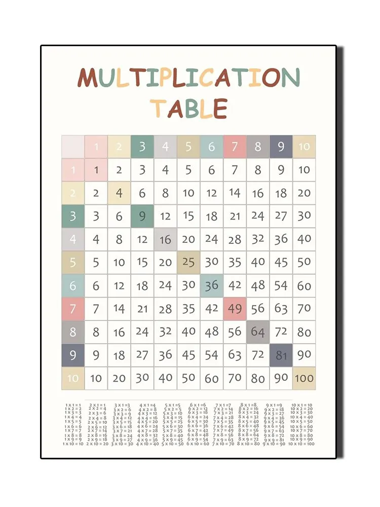 Educational Multiplication Table Poster Math Arithmetic Chart Canvas Wall Art for Kids Room Child Learning Home Decor