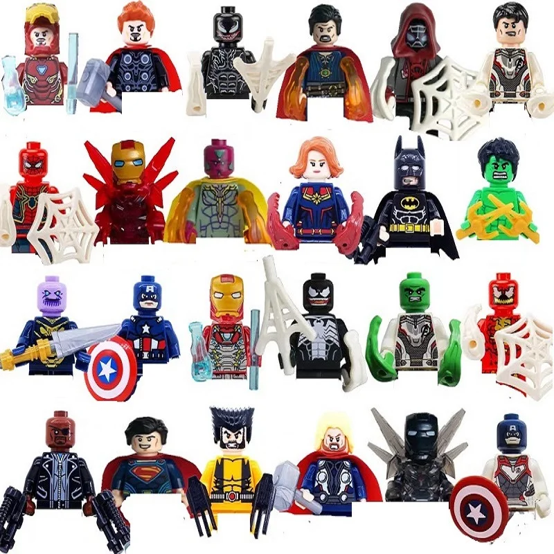 20 piece set of Marvel superhero Spider Man, Thanos anime characters, mini assembled building blocks, children’s toys