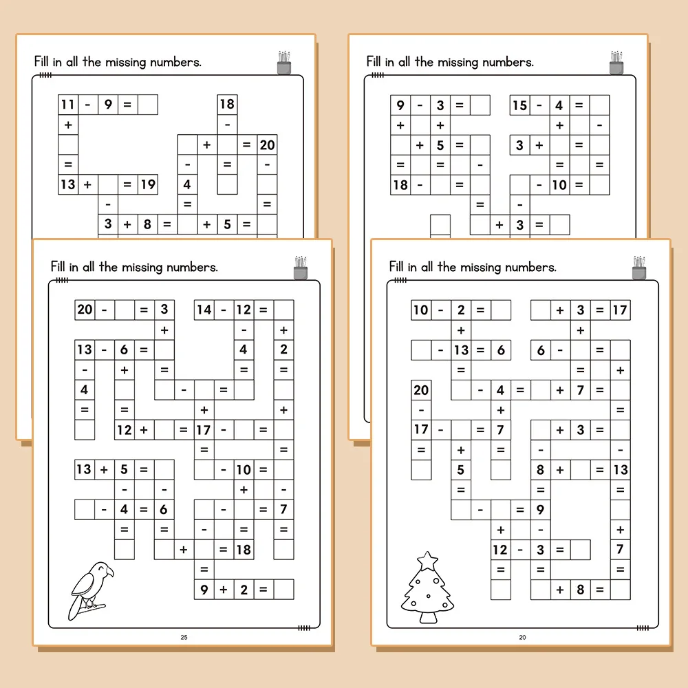 Math CrossWord Puzzles Addition Subtraction Multiplication Division Criss Cross Game Math Workbook Montessori for Kids Ages 5-8