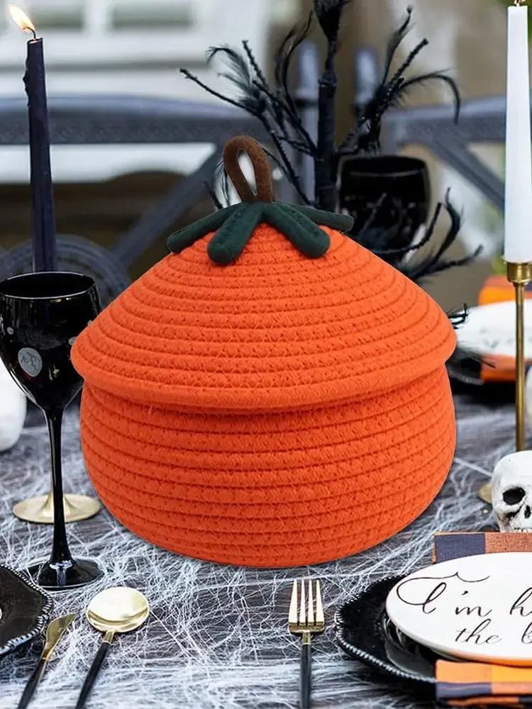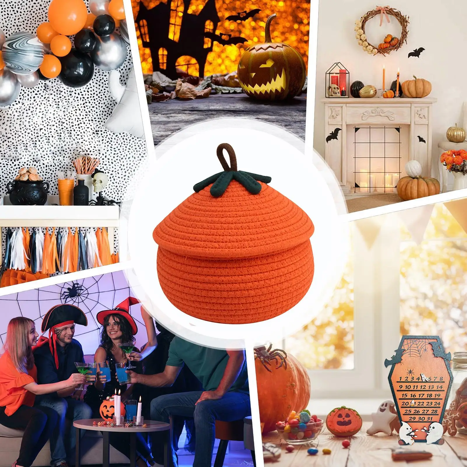 2.Dependable Storage: Safely store your holiday must-haves in our abrasion-resistant pumpkin woven basket with lid, made from natural cotton rope for long-lasting durability