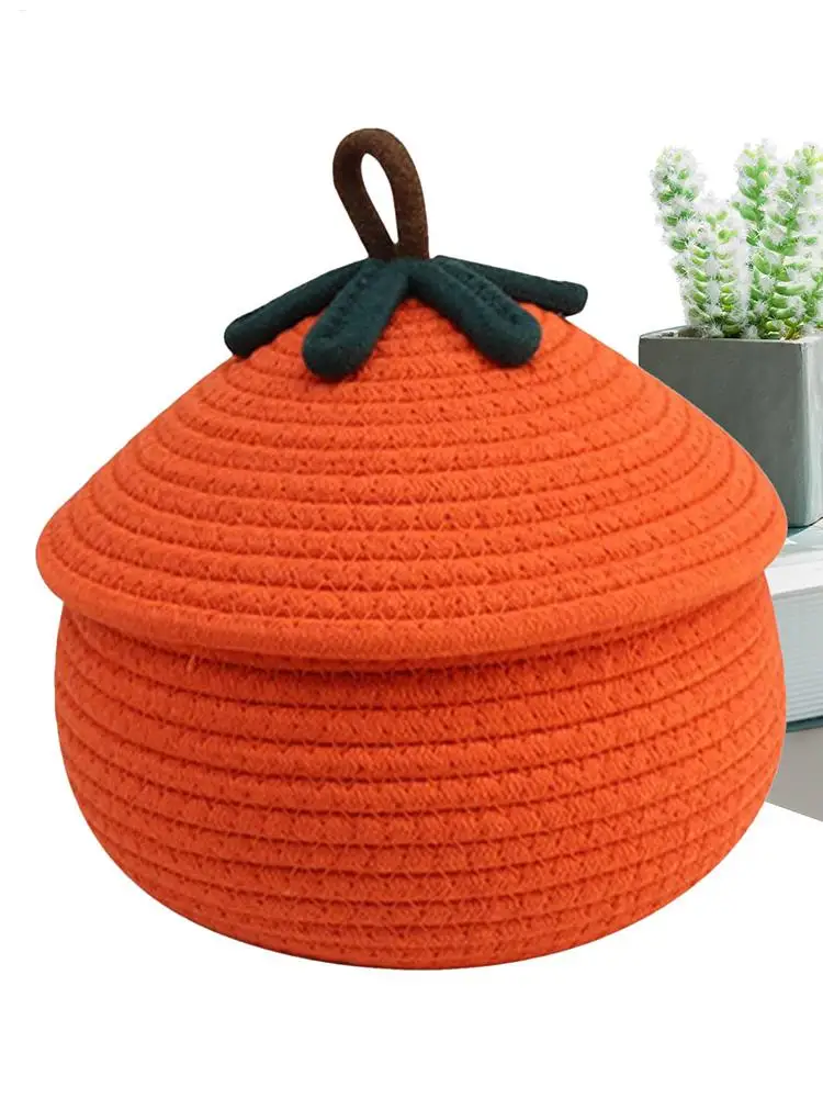 This holiday pumpkin woven basket with lid is suitable for children’s rooms! This basket is dependable and colorfast. The suitable mark for storing trinkets, toys, or even keys!