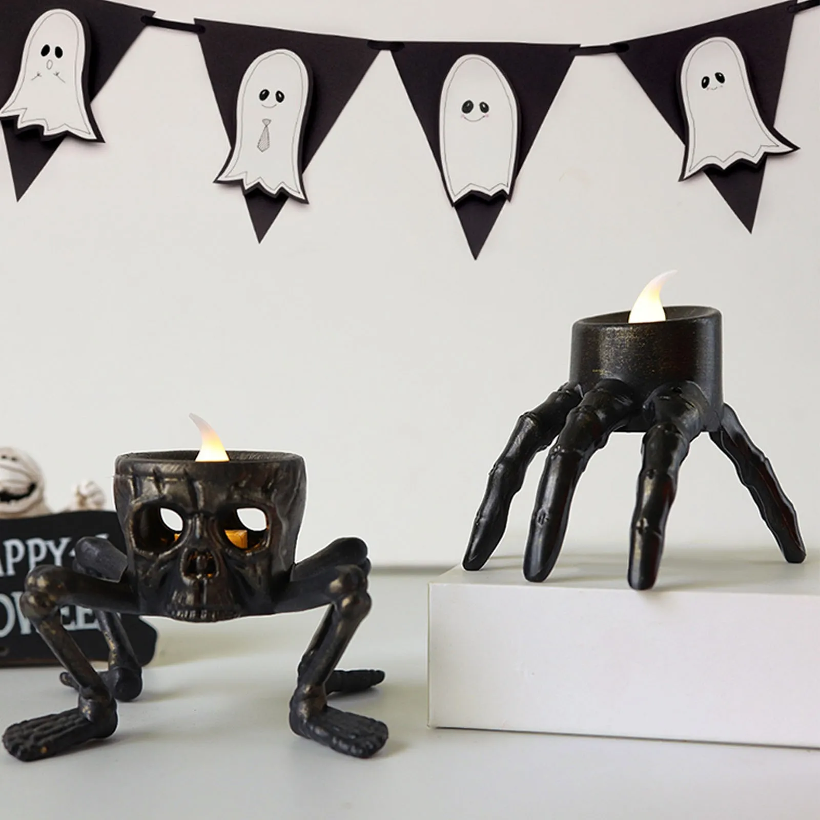 Halloween Skeleton Hand Lamp, LED Electronic Light Candle, Battery Powered Flameless Candle, Horror Halloween Indoor Decorative Light
