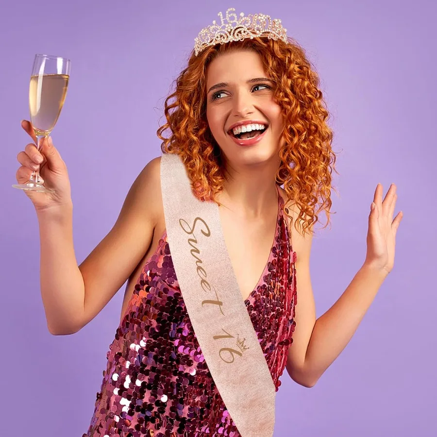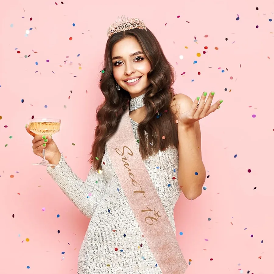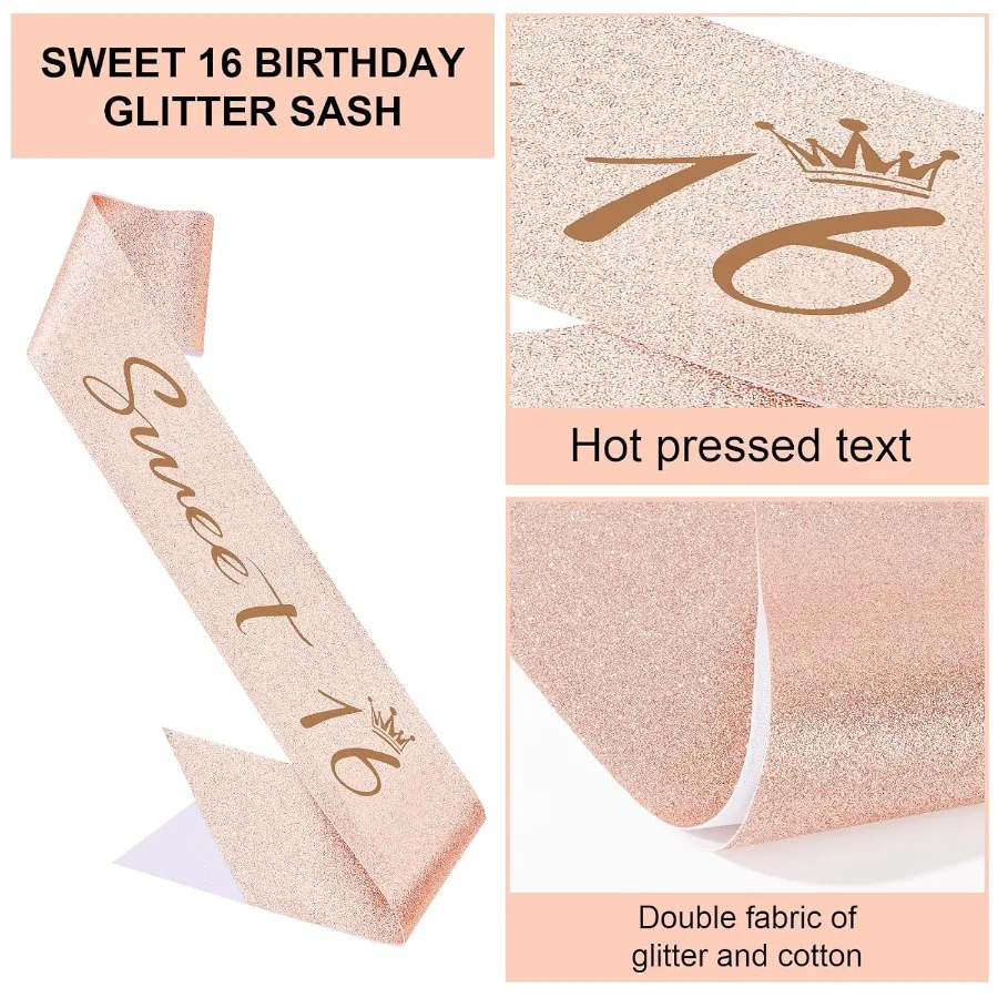 Sweet 16 Party Decorations Set Rose Gold 16th Birthday Crown and Sweet 16 Sash Glitter Kit for Girls Birthday Happy Birthday Gi