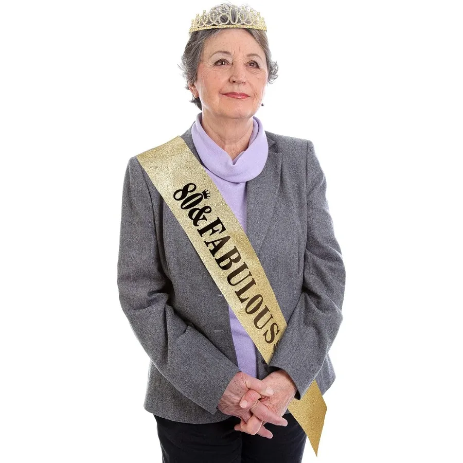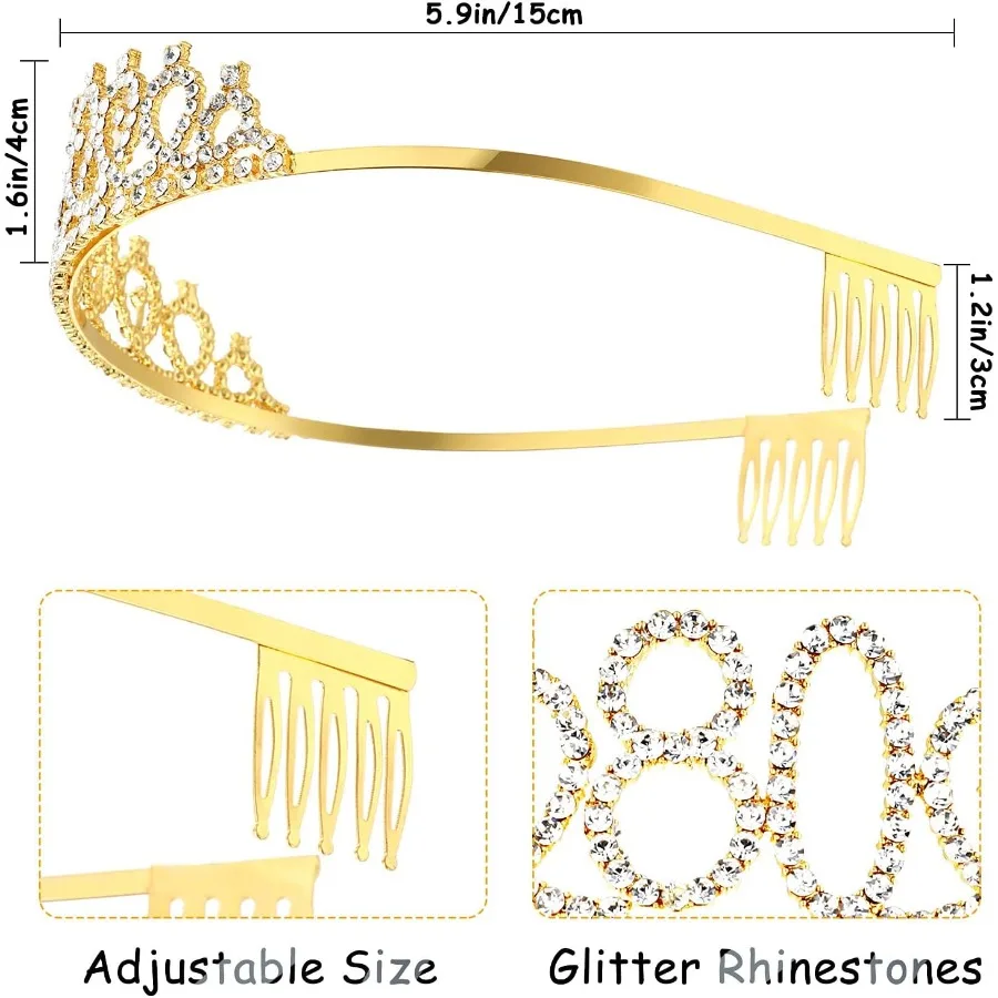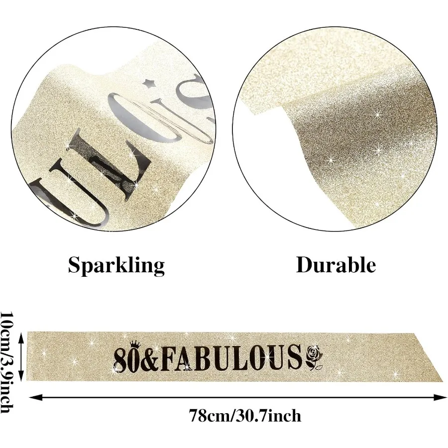 WILOND 80th Birthday Sash and Tiara Set for 80th Birthday Fabulous Sash and Gold Crown Party Decorations ChampagneAvailability: 5 in stock