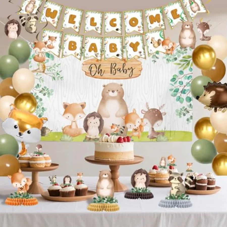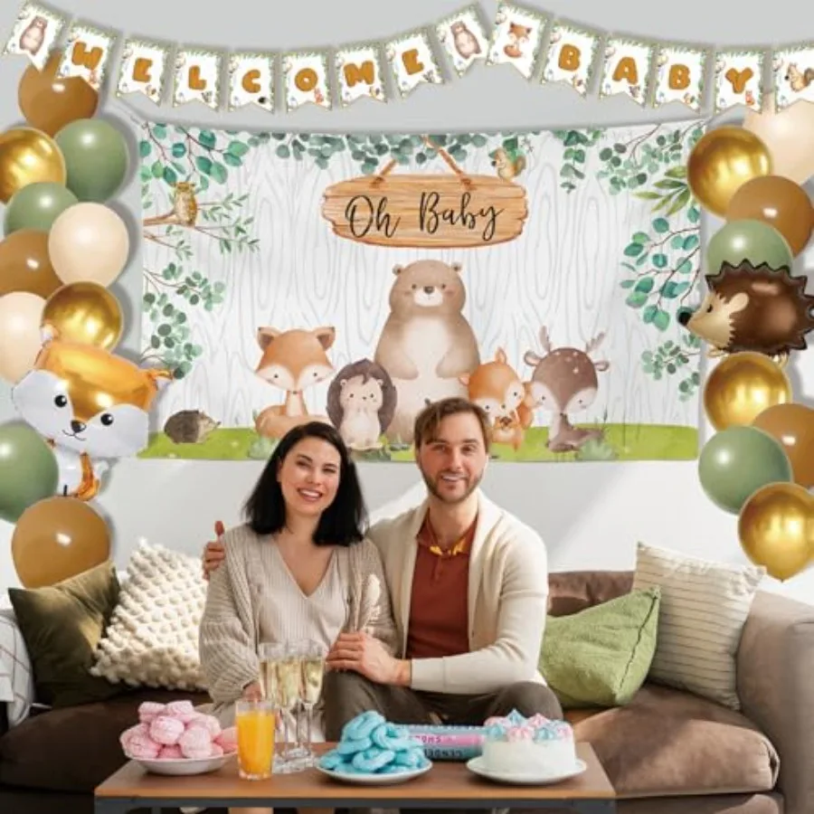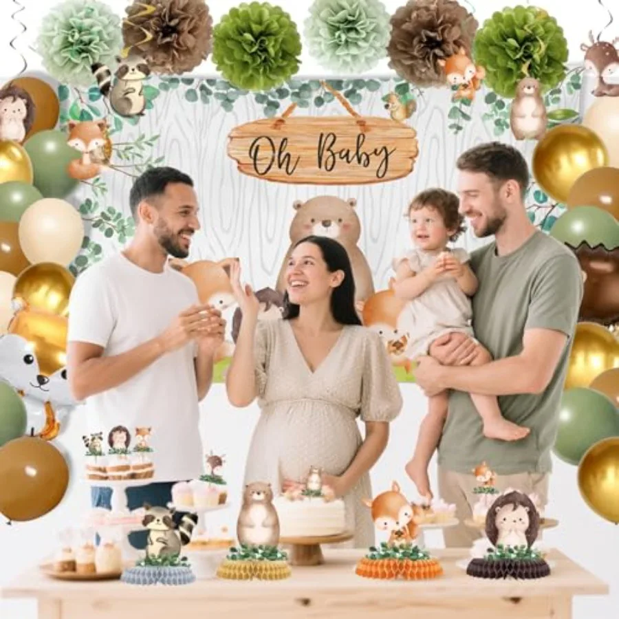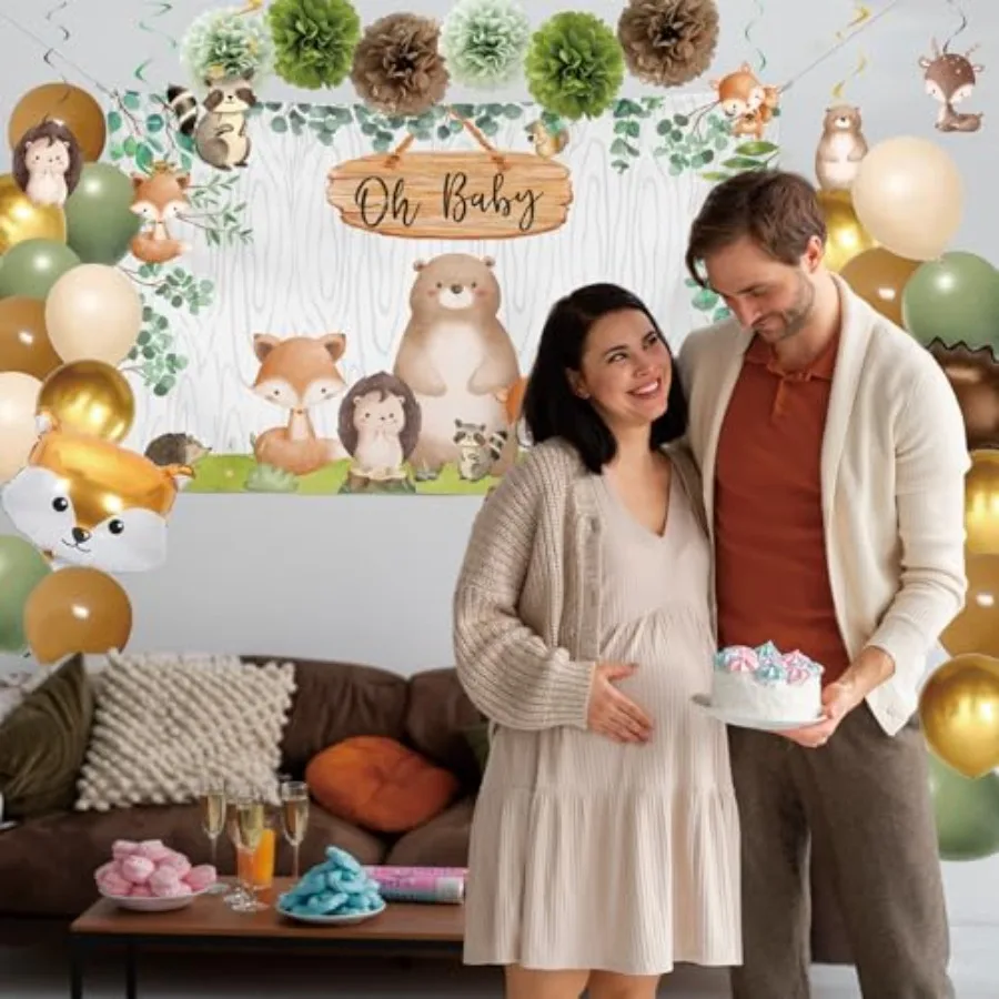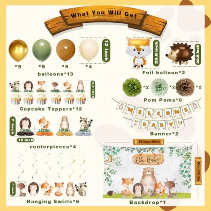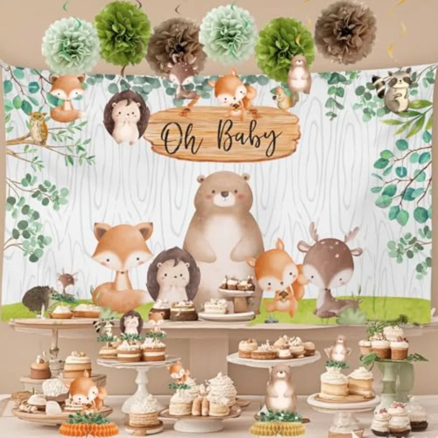 Woodland Baby Shower Decorations Gender Neutral Safari Baby Shower Decorations Kits with Oh Baby Backdrop Banner Cake Toppers C
