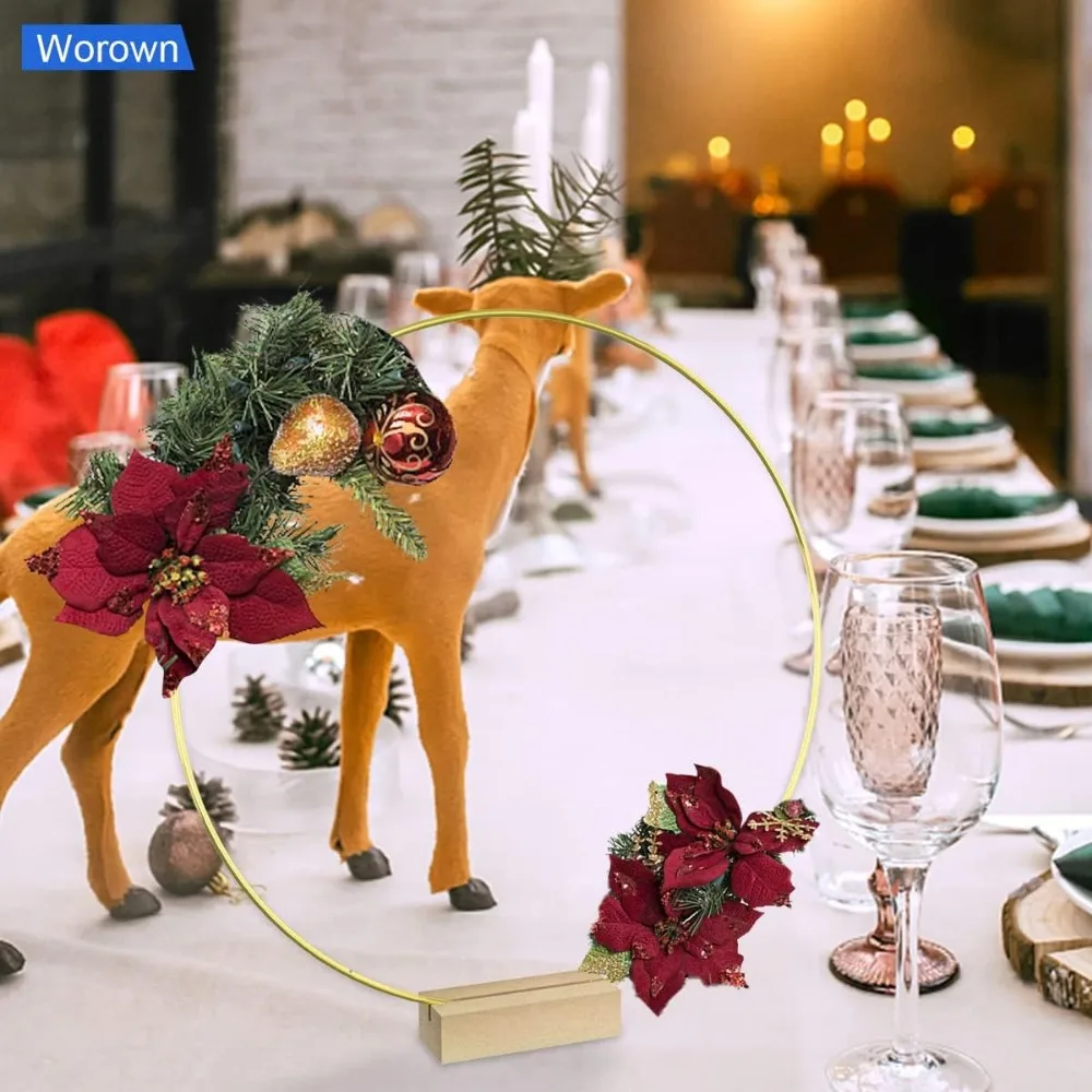 【Package Included & Key Feature】 ✔ 6 Pack Gold Floral Hoops & Wooden Stands – Includes 6 pieces of 8-inch (20cm) gold metal rings + 6 natural wooden stands. Perfect for wedding centerpiece decor, table wreaths, and wall hangings