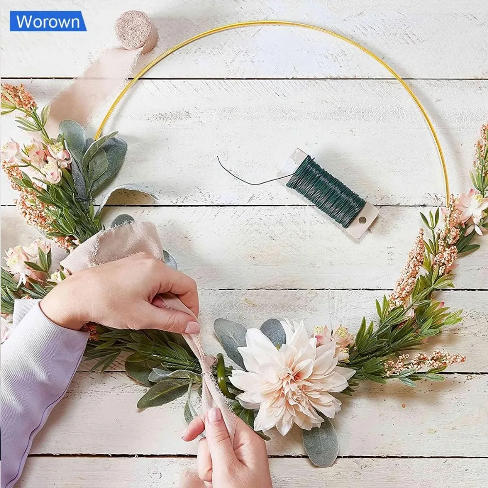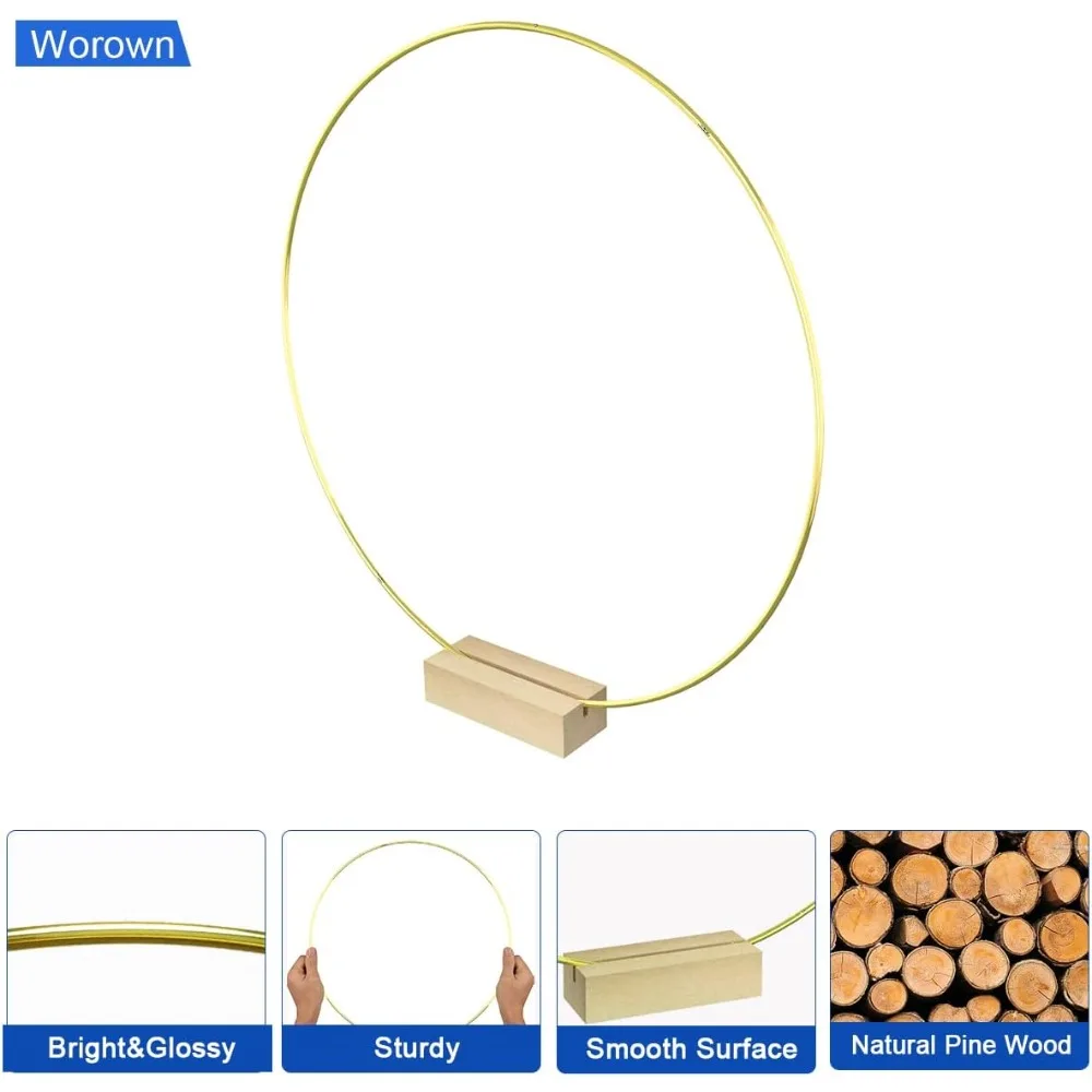 【Premium Material & Durability】 ✔ Sturdy Gold Metal & Natural Pine Wood – Anti-rust metal with glazed finish + smooth sanded wooden base. Ideal for long-lasting floral hoop decor in weddings, parties, or home styling